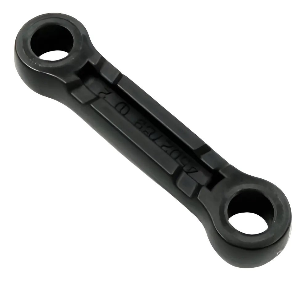 Função Principal: Em martelos rompedores, a biela é uma haste que conecta o eixo de manivelas (ou um componente giratório similar) a um pistão ou a um componente que gera o movimento linear de impacto. Sua função é converter o movimento rotativo do motor em movimento alternado (para frente e para trás), que é essencial para impulsionar o mecanismo de percussão que, por sua vez, golpeia a broca ou talhadeira.