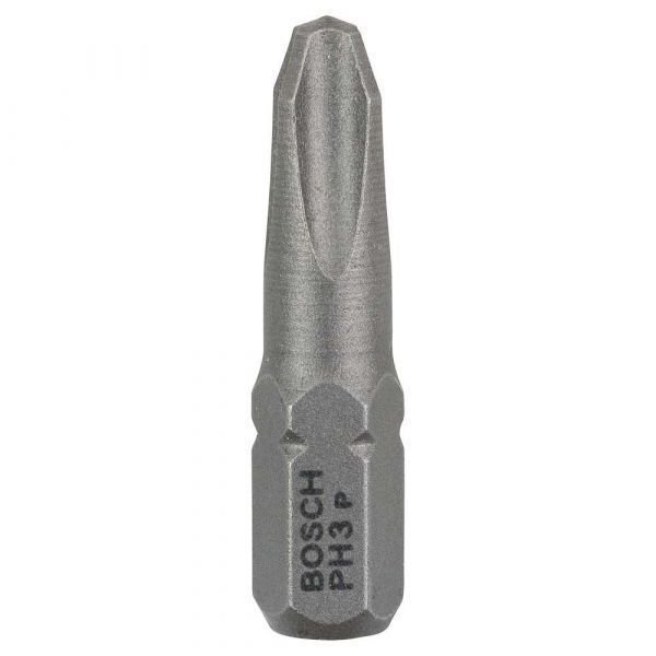 Os Bits Phillips Extra Hard PH3 25 mm da Bosch são ideais para uso profissional em parafusadeiras e furadeiras. Fabricados em aço S2 com tratamento térmico, garantem resistência superior ao desgaste e excelente desempenho em aplicações com alto torque. São perfeitos para fixações em madeira, metal ou plástico, oferecendo precisão e durabilidade.