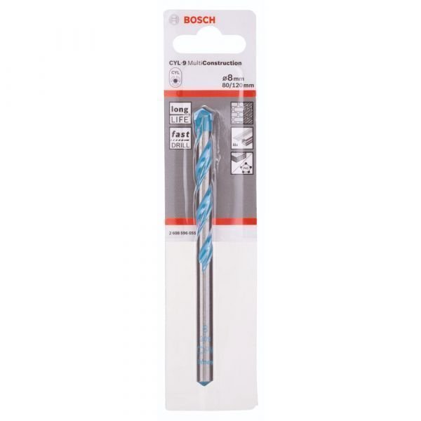 Possui haste cilíndrica e pode ser utilizada com todas as parafusadeiras e furadeiras (com ou sem impacto) com ou sem fios. A broca destina-se a praticamente todos os materiais que se encontram em trabalhos de instalação em interiores, incluindo concreto macio, alvenaria, tijolo, fibrocimento, materiais de construção leves, materiais multicamada, cerâmicas e ladrilhos, madeira, plástico, chapa de metal fina e alumínio. A broca CYL-9 MultiConstruction possui arestas de corte afiados com diamante e uma ponta centradora especial garantindo uma perfuração estável do início ao fim. Fabricada com carbeto de tungstênio refinado extremamente duradouro, oferecendo uma boa resistência ao desgaste.
