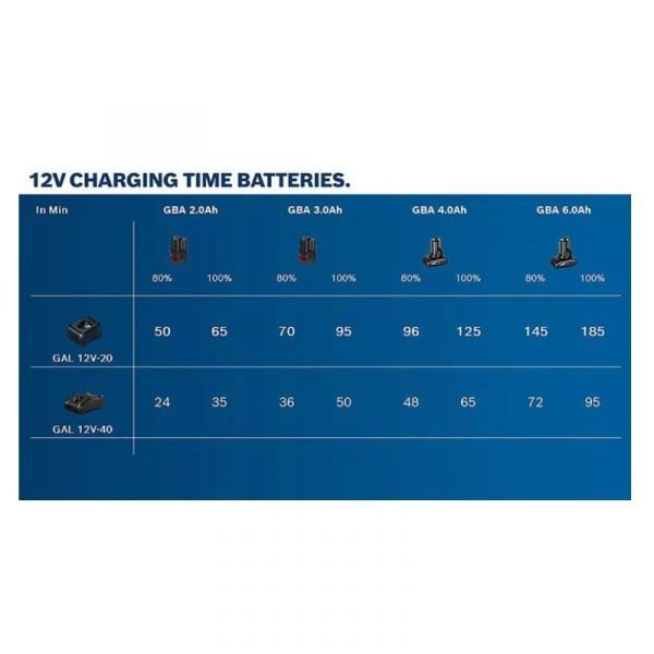 Carregamento Ultra-Rápido: Com o dobro da corrente de carregadores padrão de 2,0 A, o GAL 12V-40 reduz drasticamente o tempo de espera, permitindo que você retome o trabalho muito mais rápido.