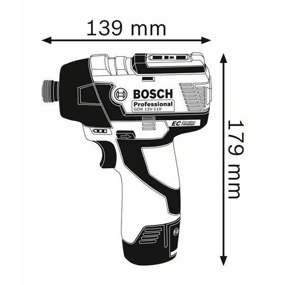A Chave de Impacto a Bateria de ¼" Bosch GDR 12V-110, 12V, possui motor sem escovas de carvão