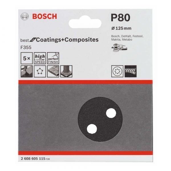 Disco De Lixa F355 125Mm G80 Com 5 Unidades - Bosch 2608605115