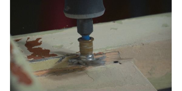 Remove a camada superficial exterior sem danificar a camada de base abaixo e remove a tinta mas não a madeira, com uma pressão leve.