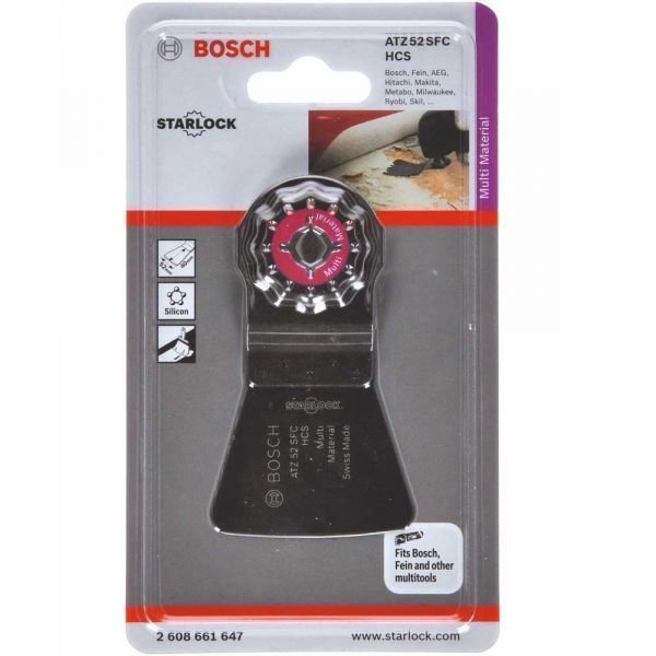 O raspador ATZ 52 SFC Starlock permite a remoção segura de resíduos macios, como adesivo para carpetes e tinta. Possui uma lâmina afiada feita para a raspagem sem esforço do material. O seu corpo maleável HCS (aço com alto teor de carbono) é elástico e flexível, o que o torna ideal para eliminar resíduos gomosos. Esta lâmina remove o adesivo macio de carpetes, os resíduos de tinta e as juntas em silicone. O sistema de montagem produz a maior transferência de energia devido a uma ligação tridimensional apertada entre a máquina e o acessório.