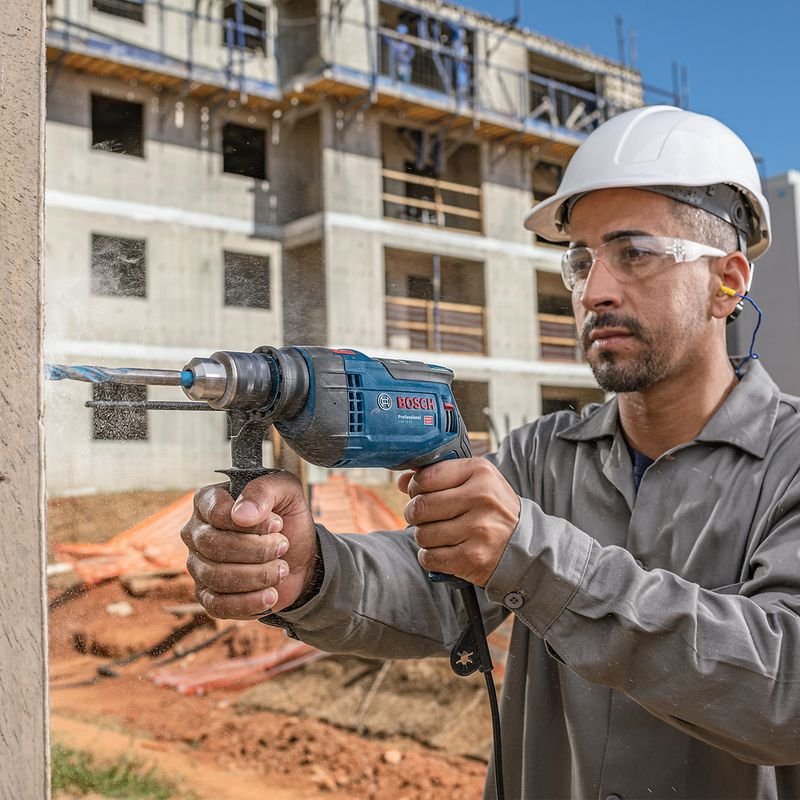 A furadeira de impacto bosch gsb 16 re 127v é indicada pra quem precisa de uma ferramenta potente, precisa e versátil no uso diário. Com 850w de potência, mandril de 1/2" com chave e seletor para ativar ou desativar o impacto, ela permite trabalhar com eficiência em concreto, madeira, aço e alvenaria. É uma furadeira robusta e confortável, com função reversível, controle de velocidade no gatilho e empunhadura lateral, pensada pro uso profissional.