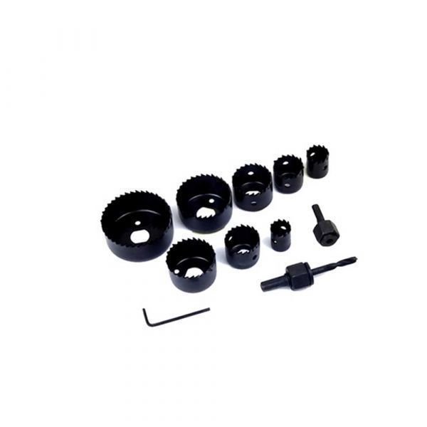 O jogo se dessas copo para madeira acompanha 8 serras copo, 2 suportes compatíveis com os diâmetros das serras.Instalação feita diretamente no mandril compatível e permite uso imediato, ela efetua cortes em materiais macios como madeira, aglomerado de madeira, placas acústicas, ideal para pequenas instalações.