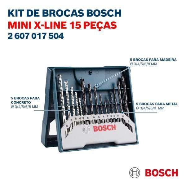 Kit De 15 Brocas Para Concreto, Metal E Madeira Mini X-Line 3,0 A 8,0Mm Bosch 2607017504