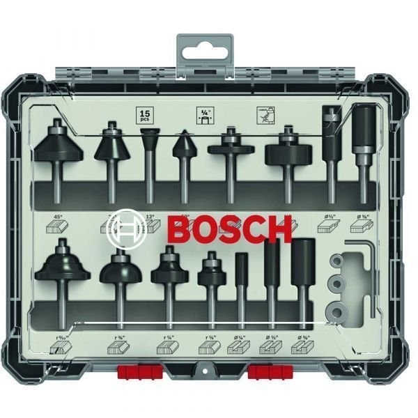 Kit Fresas 15 Peças Mistas Haste 1/4 Bosch 2607017473