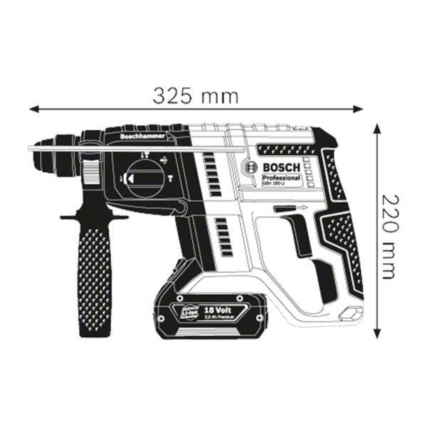 O Martelete Perfurador à Bateria Bosch Martelete GBH 180-LI 2,0 J, é ideal para os trabalhos profissionais em construções, reformas e instalações em geral. Possui sistema de troca rápida de acessórios SDS-Plus, e proporciona 20% mais furos que sua versão anterior. Vem com motor sem escovas de carvão livre de manutenção, com o dobro de vida útil e maior autonomia. Além disso vem com Luz de led, para trabalhar em áreas menos iluminadas.