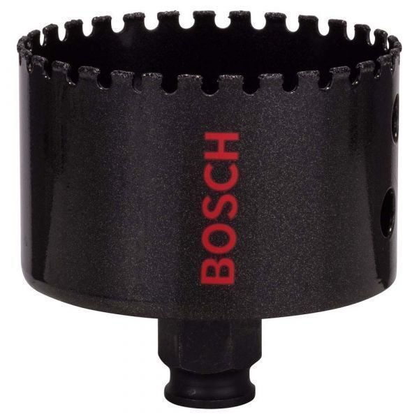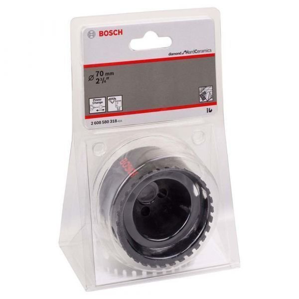 A serra copo Diamond for Hard Ceramics fura através dos ladrilhos, azulejos e porcelanatos mais duros. O revestimento de diamante confere durabilidade a esta serra copo em ladrilhos muito resistentes de todos os tipos de materiais cerâmicos. Além disso, o gume de corte permite cortes rápidos e limpos. Utilize esta serra copo quando cortar azulejos de parede e de piso. A serra copo Diamond for Hard Ceramics vem com a porca para uso com o adaptador Power-Change exclusivo da Bosch, o sistema de troca mais rápido do mercado. Permite a troca da serra copo e brocas guia com um clique.
