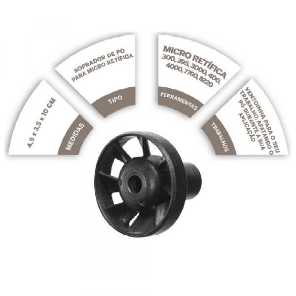Ventoinha para micro retífica, que sopra o pó para fora de sua área de trabalho.