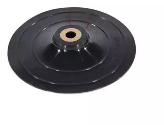 Função: Este é o prato de apoio (também chamado de "pad" ou "disco de borracha") onde as lixas (geralmente de 6 polegadas ou 150mm de diâmetro) são fixadas, geralmente por sistema de velcro (Hook & Loop). Ele é a superfície que faz contato com a lixa e, consequentemente, com a superfície a ser lixada.